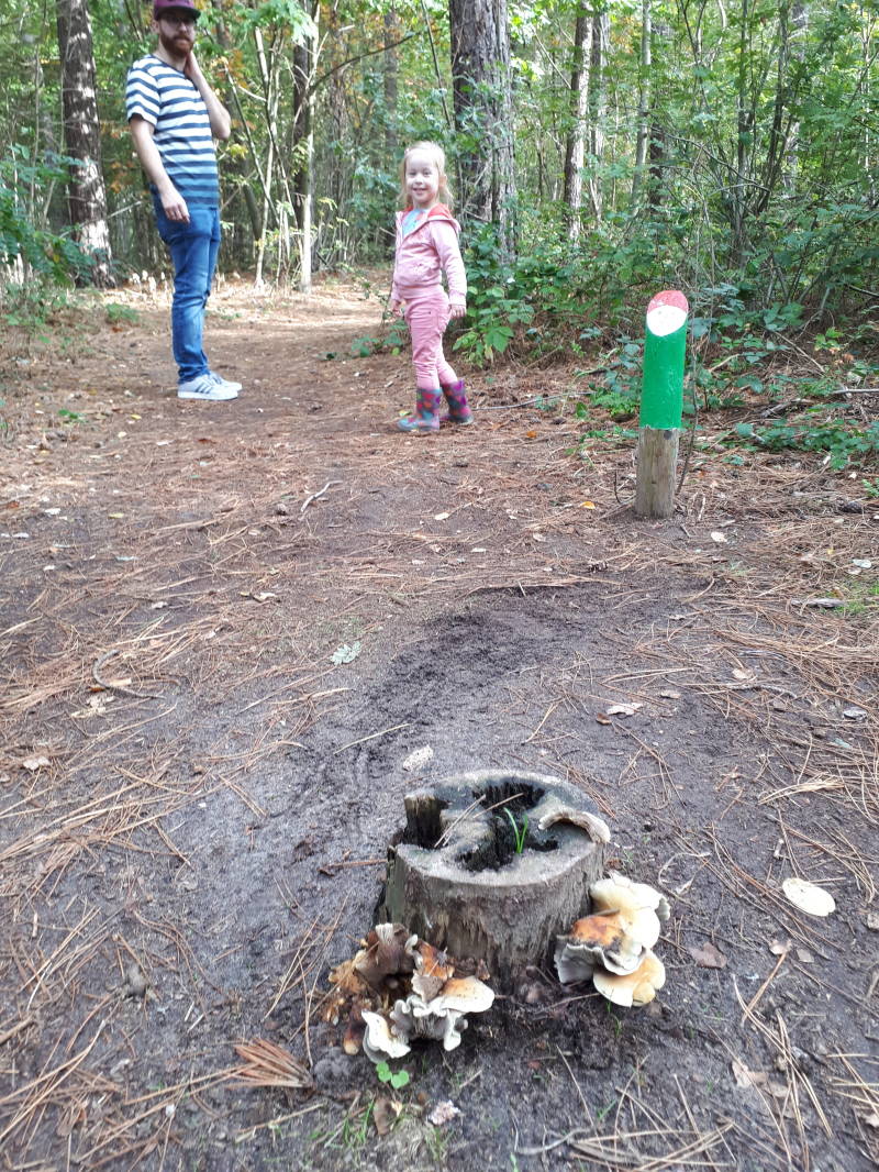 Oh mèn ik heb gewoon te veel leuke foto's. Dus naja toch maar gewoon even een paar geselecteerd. Nadat we alle diertjes bewonderd hadden en de winkelroute verderliepen kwamen we nog een draaimolen en springkussen tegen. Wat een feest! Voorbij de kassa's nog een pilaar vol met ballonnen en aan een medewerker gevraagd of we er eentje mochten hebben. Met een mooie blauwe ballon verliet Abby Daniëls. Na deze leuke ervaring zijn we nog even doorgereden naar het bezoekerscentrum van de meinweg. Want daar ligt ook het kabouterpad. En dat is precies wat we wilden gaan zoeken. ;-) Kabouters. Naja de meisjes dan. Ik hoopte stiekem her huisje van kabouters te vinden. De rood met witte stippen paddenstoelen. Boh...ze zijn echt nog schaars hier in het zuiden des lands maarrr ik heb er een paar gespot hoor! Zo mooi!