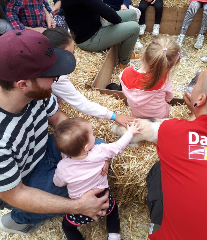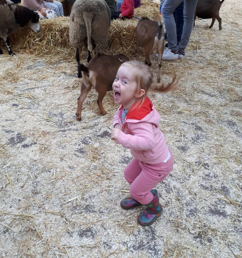 In eerste instantie hadden we een flinke herfstwandeling gepland. Maar toen ik mijn zus sprak op whatsapp kwam mij ter oren dat er vandaag een kinderboerderij is bij Daniëls tuincentrum. Eentje waar de kindjes de diertjes niet alleen mogen aaien maar ook vast mogen houden als ze willen. En als dat mogelijk is natuurlijk. Er loopt ook een ezeltje bij...die til je natuurlijk niet op. Maar aaien kan wel. Abby en Meagan genoten zienderogen van alle lieve diertjes en van de andere kindjes om hun heen. Inge en Ralph waren er ook met kleine Rowan. Hartstikke gezellig!