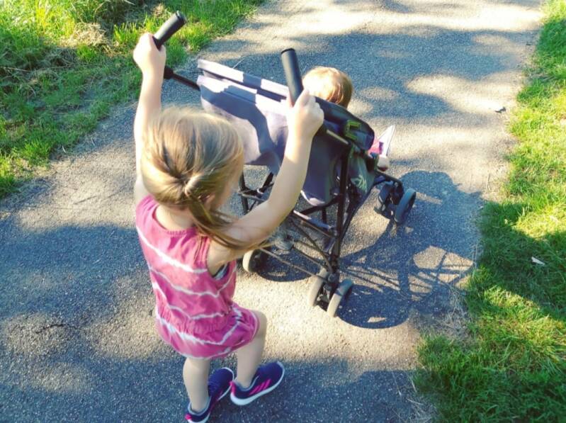 Om niet helemaal een huismus te zijn, dat ben ik al meer dan genoeg, halen we zoveel mogelijk uit die eerste ochtenduren. En zo zijn we eerder deze ochtend lekker een flinke ronde gaan wandelen met zn drietjes. Meagan in de buggy en Abby noemt zichzelf een grote meid 'en loopt dat hele rondje wel even hoor mama'. En gelijk heeft ze!